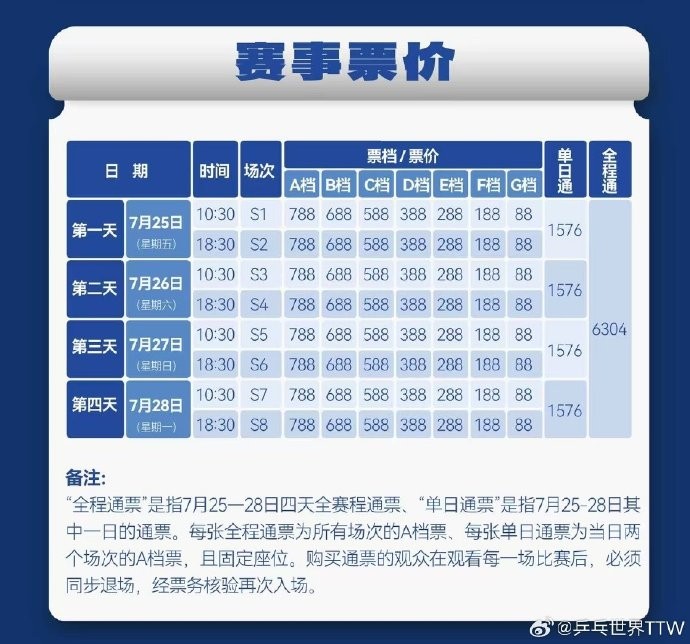 乒超联赛厦门站门票7月15日开售:最低88元,通票6304元