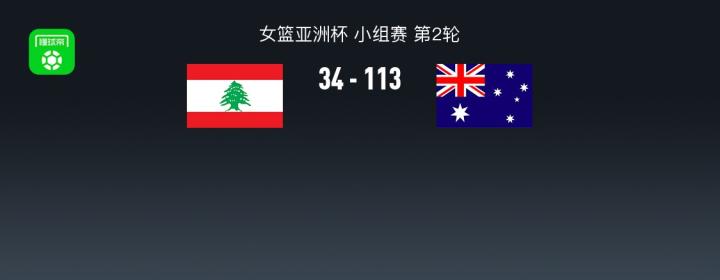 第四节黎巴嫩女篮努尔-拉班拿下3分,澳大利亚女篮S-比莉卡华丝拿下6分,最终黎巴嫩女篮34-113不敌澳大利亚女篮