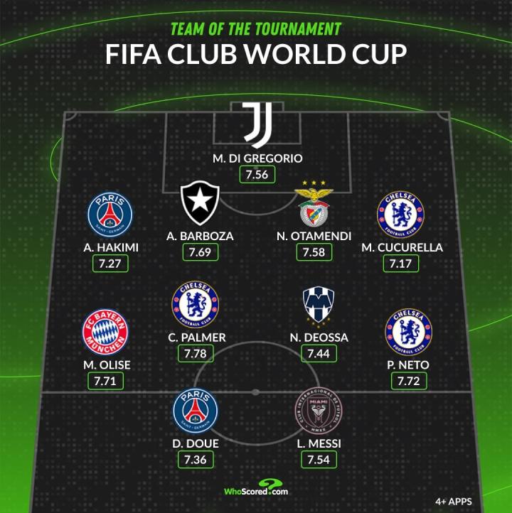 whoscored列世俱杯最佳阵:帕尔默领衔蓝军3将、梅西、杜埃入选