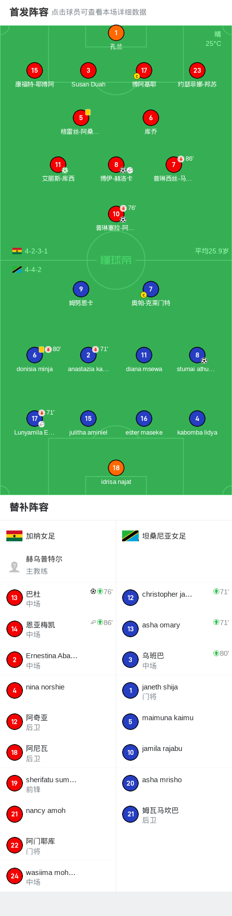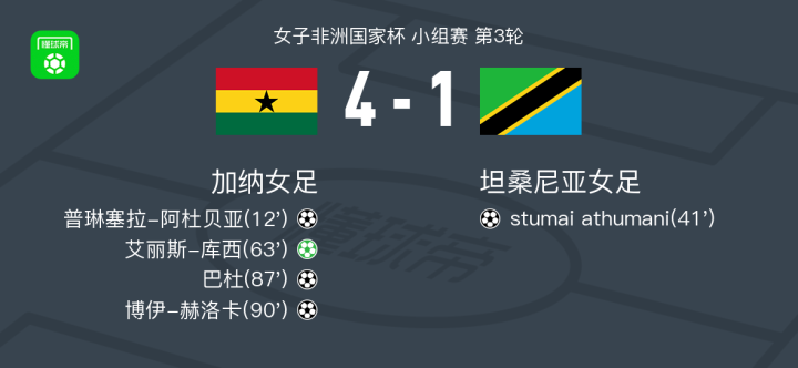 加纳女足4-1大胜坦桑尼亚女足,艾丽斯-库西点射破门,博伊-赫洛卡1传1射