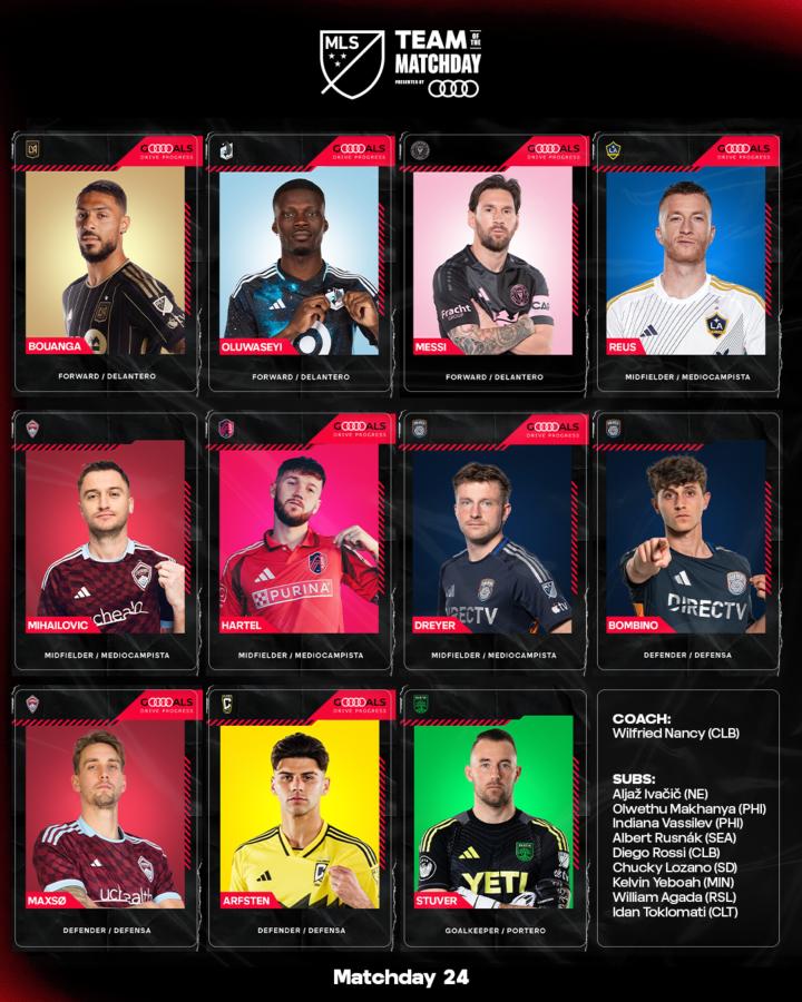 北京时间7月15日,美职联官方公布了第24轮的最佳阵容,其中梅西领衔,罗伊斯、布安加在列。