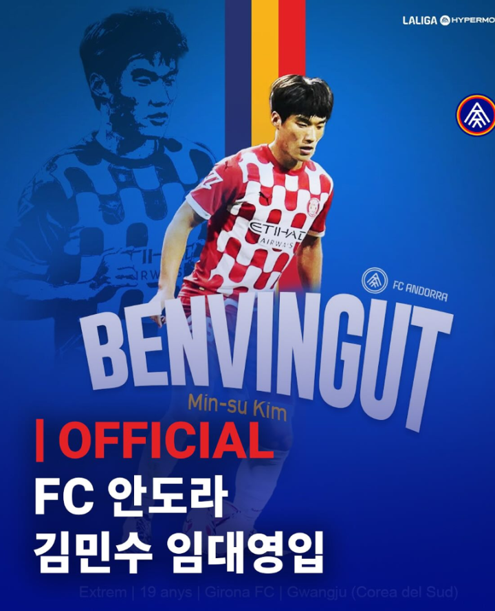 韩国19岁边锋、攻击型中场金旻洙(Kim Min-su,김민수)租借加盟西乙球队FC安道尔。