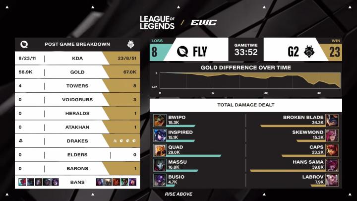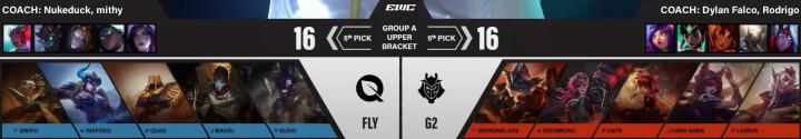 第15分钟,FLY越塔被G2双人组完美化解,后续G2完成0换2。