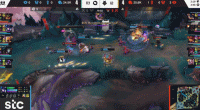 第27分钟,HLE收下大龙,第29分钟,瑞兹开大绕后变“灵车”,芮尔发条完美压起身。