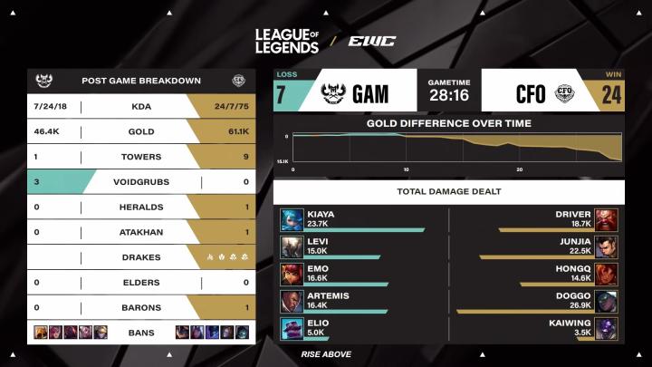 CFO轻松击败GAM淘汰对手。