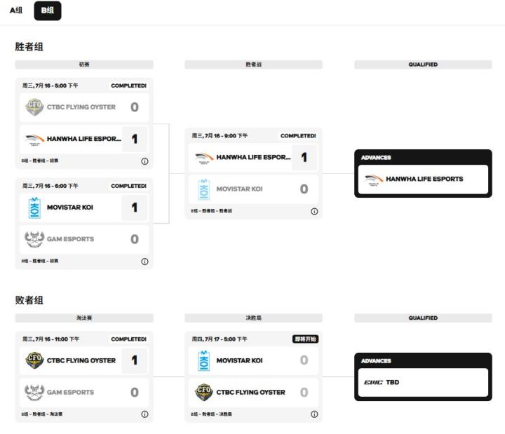 目前,HLE与G2已成功从小组突围,C9和GAM被淘汰。