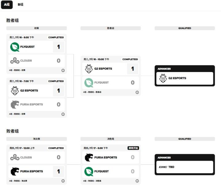 FURIA、FLY、KOI、CFO将在17日晚争夺另外两个晋级名额。