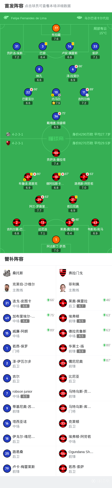 第74分钟,弗拉门戈前场右侧任意球直接射门,布拉藏将球扑出