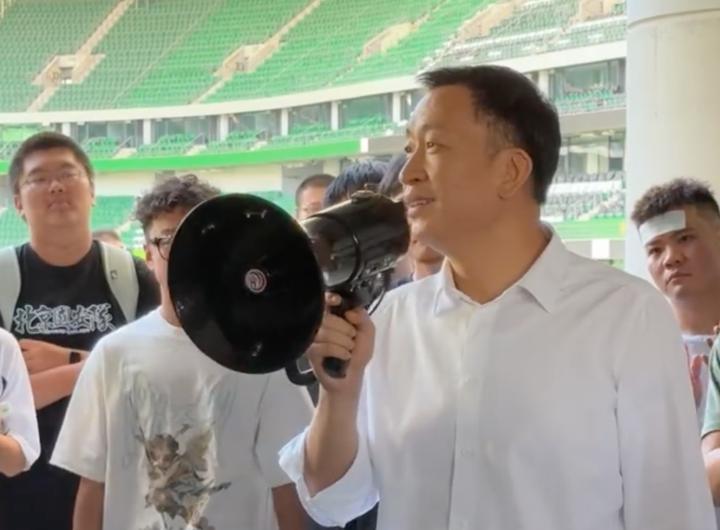 我正好今天在来这儿开会,昨天我就看到御林军(北京国安球迷组织)的这些球迷在摆放这个tifo。我当时我就说,哎呦,这个怎么形容呢?就是用实际行动在诠释对这个俱乐部的一个真爱。我说我今天一定要安排时间来和咱们这个球迷朋友们见个面,但是我没想到会这么多人。