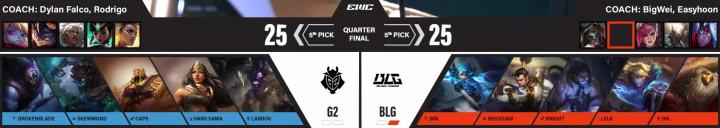 北京时间7月17日,电竞世界杯英雄联盟项目淘汰赛8进4,G2赢下第2局游戏,将比分扳成1-1平。