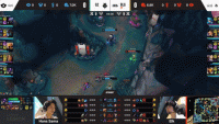 第30分钟,G2打大龙逼团,BLG阵型分散想切沙皇未果,塞拉斯被大树闪现捆,G2团战0换3。