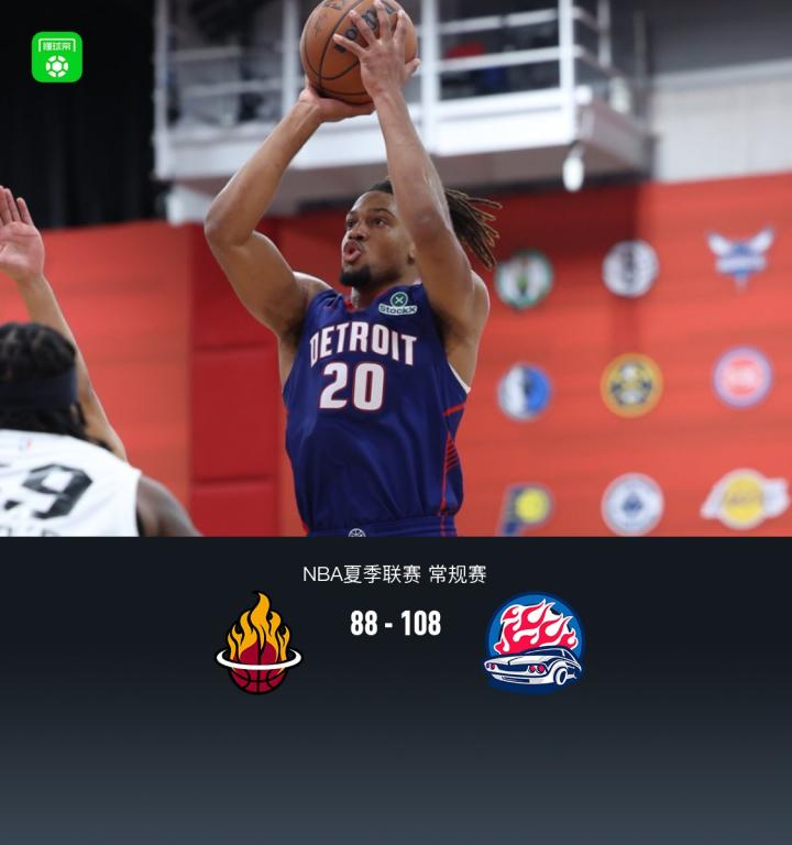 北京时间7月18日NBA夏季联赛 常规赛,迈阿密热火对阵底特律活塞。半场热火36-52活塞,最终热火88-108活塞。
