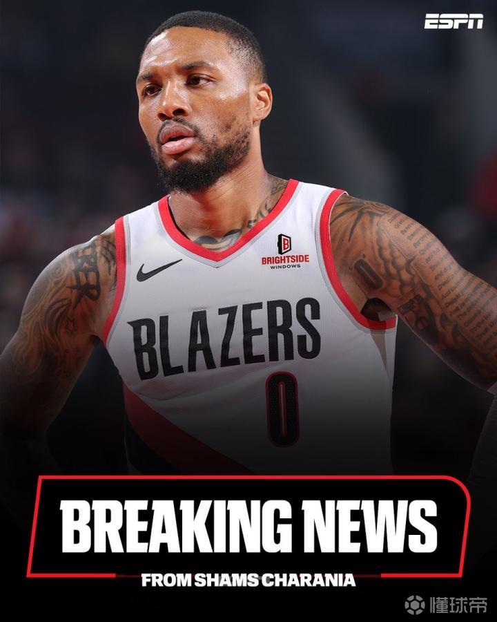 Shams:35岁利拉德3年4200万美元重返开拓者,第三年球员选项