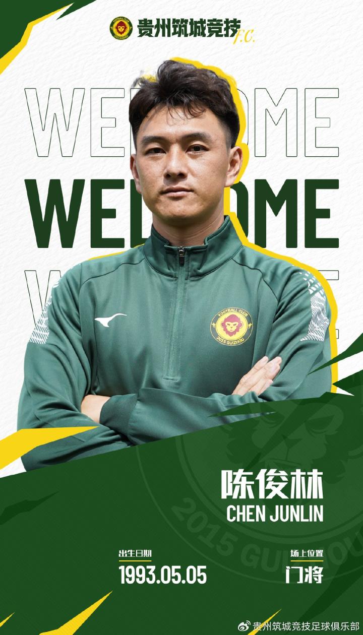北京时间7月18日,官方消息,广州豹32岁门将陈俊林加盟贵州筑城竞技。