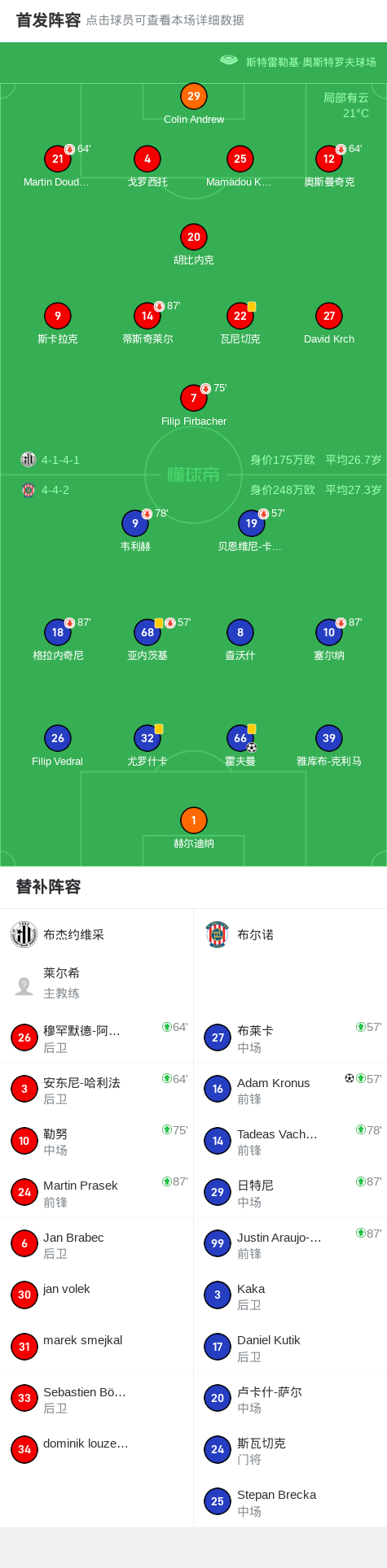 布尔诺2-0捷克布杰约维采,霍夫曼建功,Adam Kronus锦上添花