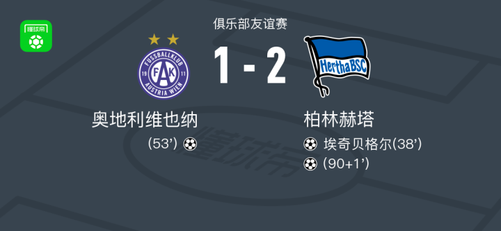 柏林赫塔2-1奥地利维也纳战报bot @懂球帝2025-07-19 02:52北京时间7月19日俱乐部友谊赛,奥地利维也纳对阵柏林赫塔。柏林赫塔埃奇贝格尔破门。最终比分奥地利维也纳 1-2 柏林赫塔。点击查看本场比赛详细数据>>精彩瞬间第38分钟,柏林赫塔球员埃奇贝格尔打入一球。第53分钟,奥地利维也纳球员打入一球。下半场补时第1分钟,柏林赫塔球员打入一球。 球队阵容 技术统计 展开更多