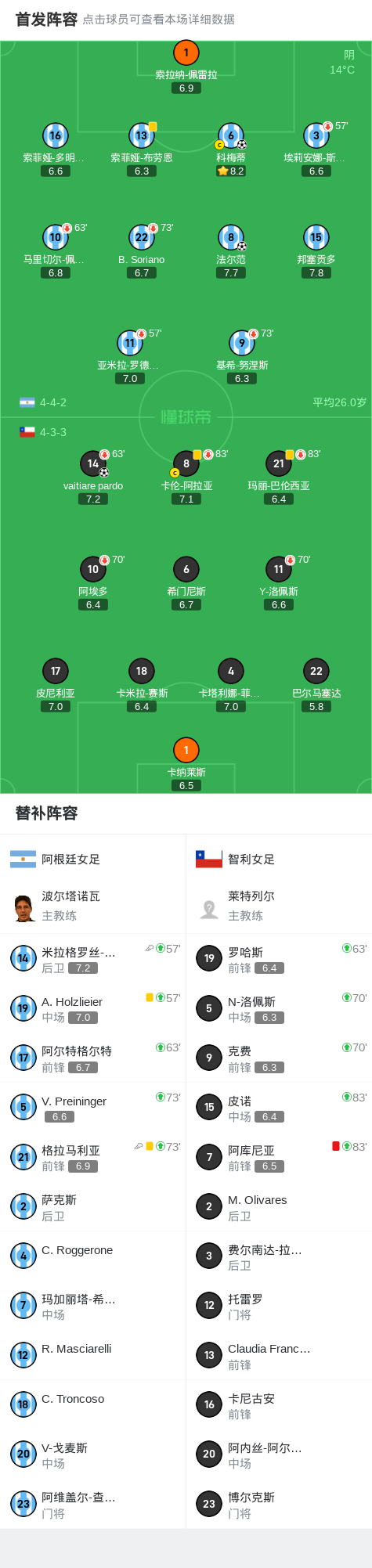 阿根廷女足2-1逆转智利女足,科梅蒂、法尔范破门