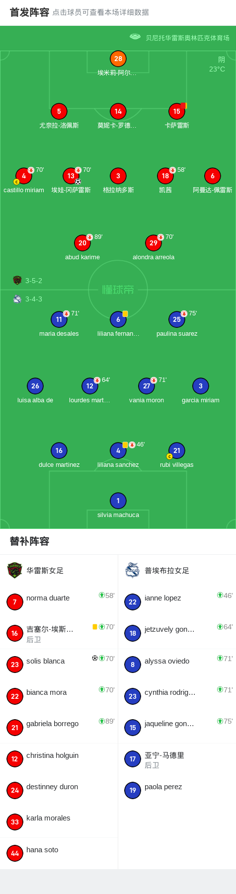 第16分钟,华雷斯女足球队卡萨雷斯吃到第二张黄牌。