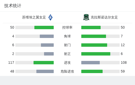 第53分钟,苏维埃之翼女足球员奥西波娃助攻阿纳斯塔西娅-契里奇打入一球。