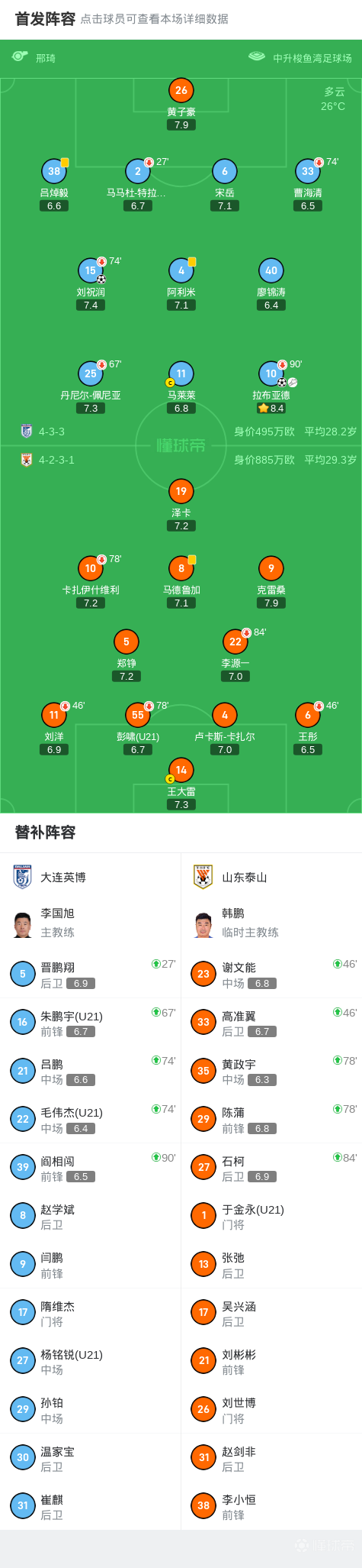 第90分钟,阎相闯替补上场,拉布亚德下场