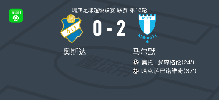 马尔默2-0奥斯达,奥托-罗森格伦建功,哈克萨巴诺维奇锦上添花