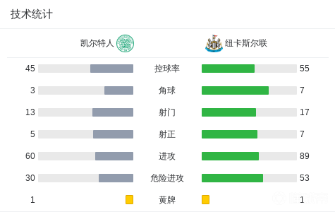 第45分钟,波普出击失误,约翰尼-肯尼打进空门,凯尔特人2-0纽卡