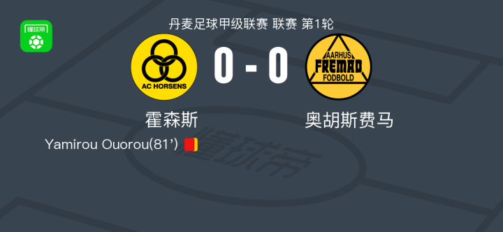 霍森斯0-0奥胡斯费马,场面火爆,霍森斯6人染黄战报bot @懂球帝2025-07-19 23:56北京时间7月19日丹麦足球甲级联赛 联赛 第1轮,霍森斯主场对阵奥胡斯费马。最终比分霍森斯 0-0 奥胡斯费马。点击查看本场比赛详细数据>>点击查看丹甲完整积分榜>>精彩瞬间第81分钟,霍森斯球队Yamirou Ouorou吃到第二张黄牌。 技术统计 展开更多