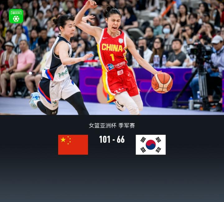 第四节,前半节中国女篮再度出现进攻哑火5分钟仅拿到4分,后半节中国女篮找到手感,双方展开对攻拉锯,最终中国女篮101-66战胜韩国女篮。