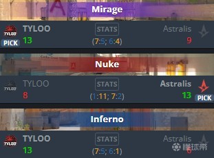 在地图池方面,天禄不打Dust2,Nuke熟练度相对薄弱,A队则是不打Anubis,剩余的5张图很可能成为决赛BO5的5张选图。在此前与A队的小组赛中,天禄赢下迷城和小镇,但在核子中半场仅1分惨败。