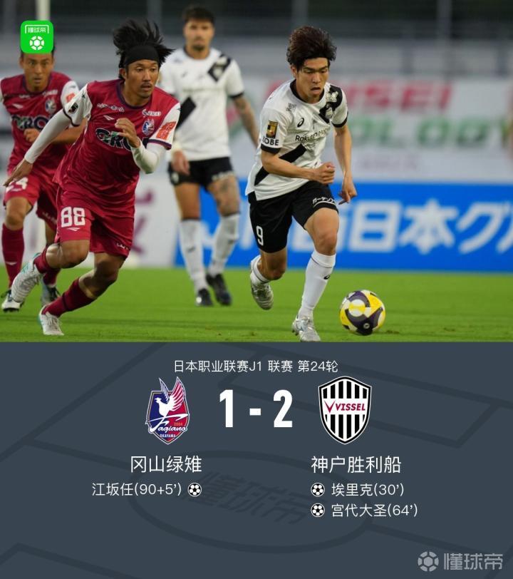 神户2-1客胜冈山登顶榜首,埃里克破僵,宫代大圣轰世界波