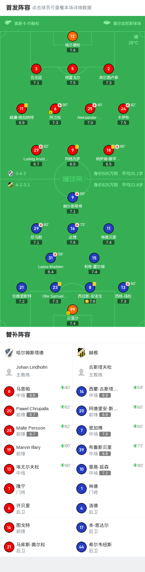 哈尔姆斯塔德0-0赫根,阿格内罗错失良机战报bot @懂球帝2025-07-21 00:32北京时间7月20日,瑞典足球超级联赛第16轮,哈尔姆斯塔德坐镇主场迎战赫根。整场比赛节奏紧凑,双方均未能打破僵局,最终以0-0的比分收场。点击查看本场比赛详细数据>>点击查看瑞典超完整积分榜>> 球队阵容 技术统计 展开更多