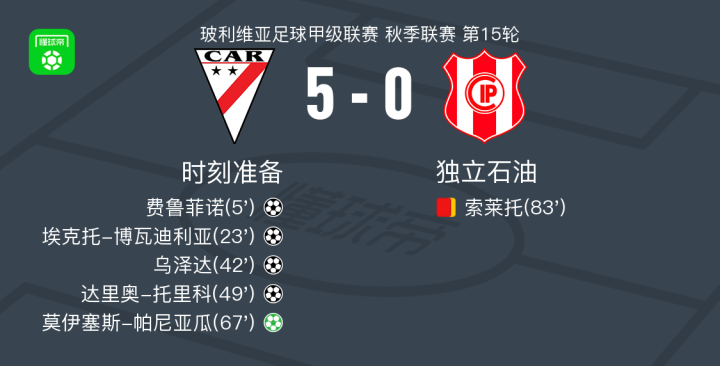 时刻准备5-0血洗独立石油,莫伊塞斯-帕尼亚瓜1射1传,达里奥-托里科建功