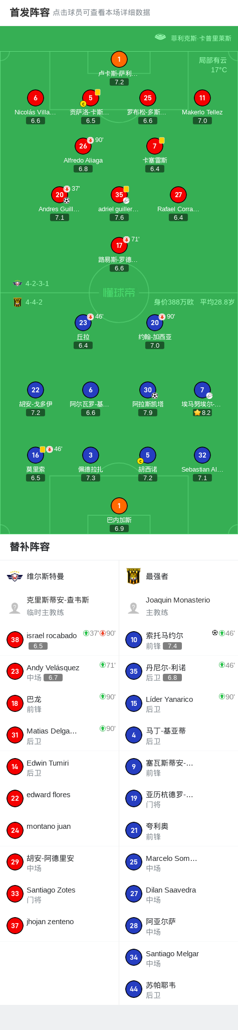 第23分钟,维尔斯特曼球员adriel guillermo助攻Andres Guillermo打入一球。