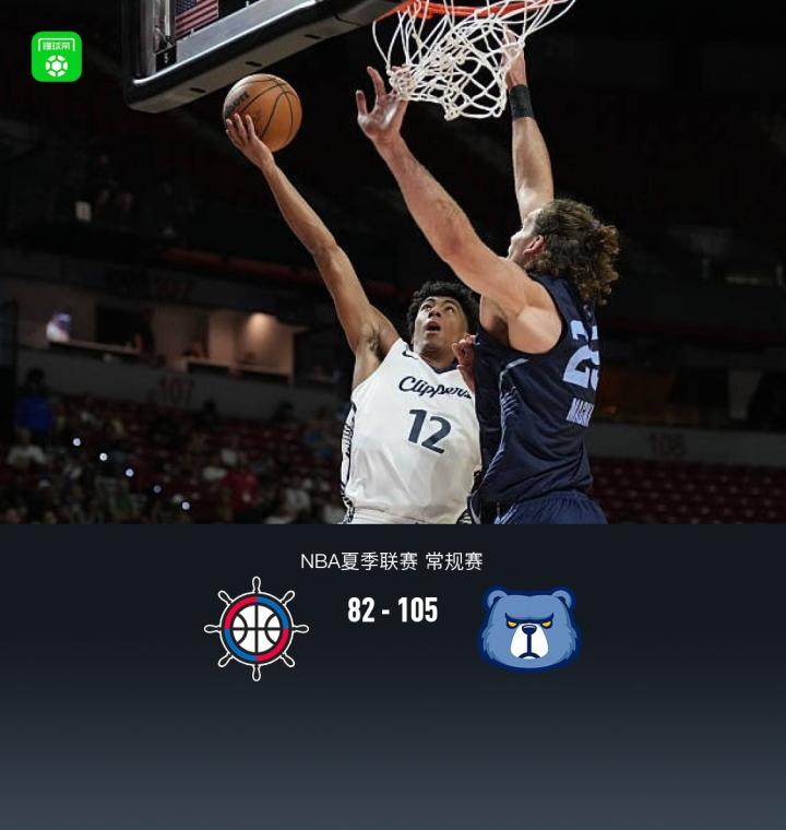 北京时间7月21日,NBA夏季联赛,洛杉矶快船对阵孟菲斯灰熊。半场快船34-55灰熊,最终快船82-105灰熊。洛杉矶快船乔丹-米勒24分6板2助,卡梅隆-克里斯蒂15分5板2助;孟菲斯灰熊泰勒-伯顿20分7板3助,贾文-斯莫尔17分4板9助。