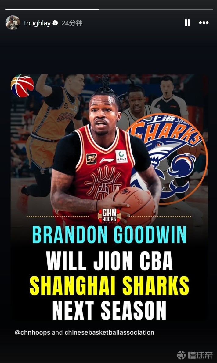 古德温在个人社媒上转发了下赛季将加盟上海男篮的消息。