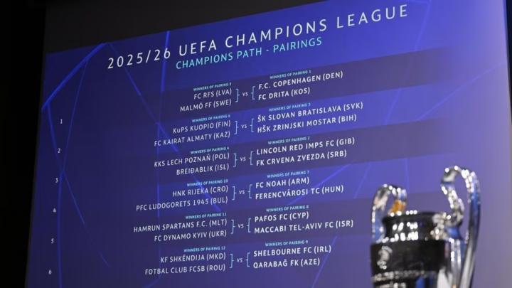 欧足联官方进行了2025/26赛季欧冠资格赛第三轮的抽签仪式,所有对阵均已经出炉。
