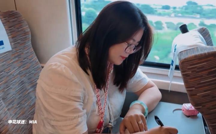 申花球迷Mia在高铁清洁袋上寄语球迷:“申花精神”永不停歇