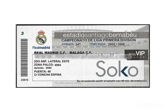 ▶西甲:05-06赛季(皇马vs马拉加)VIP门票
