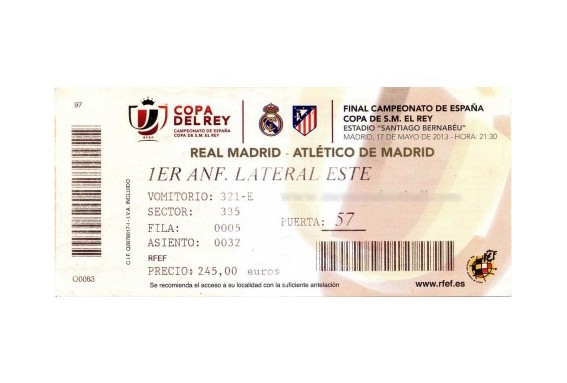 由于西班牙超级杯每年只有一场,到目前为止一共才举办了36场,因此小编费劲九牛二虎之力,才找到下面三张门票。