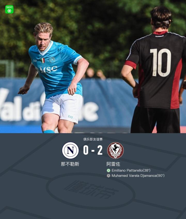 那不勒斯0-2意丙球队阿雷佐,德布劳内、诺阿-朗首秀