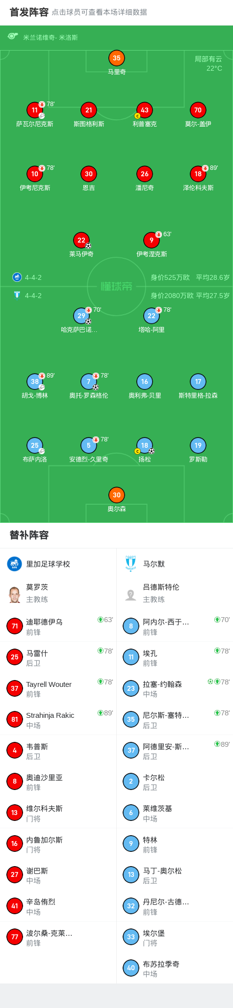 马尔默4-1大胜里加足球学校,拉塞-约翰森点射破门,哈克萨巴诺维奇建功