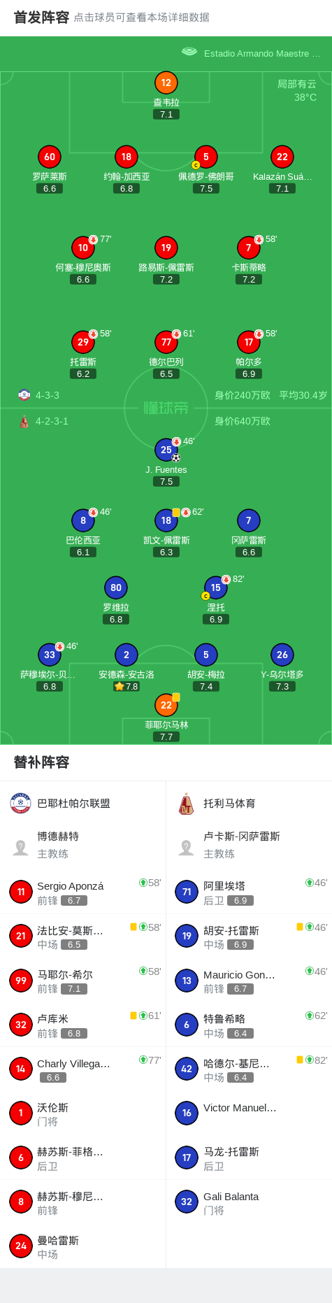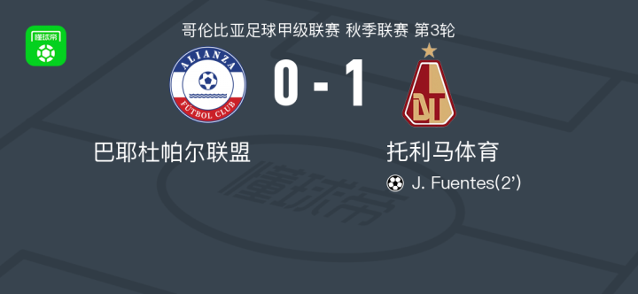 托利马体育1-0巴耶杜帕尔联盟,J. Fuentes制胜战报bot @懂球帝2025-07-23 06:57北京时间7月23日,哥伦比亚足球甲级联赛秋季联赛第3轮,巴耶杜帕尔联盟主场迎战托利马体育。比赛中,托利马体育球员J. Fuentes成功打入全场唯一进球。最终比分巴耶杜帕尔联盟 0-1 托利马体育。点击查看本场比赛详细数据>>点击查看哥伦甲完整积分榜>>精彩瞬间第2分钟,托利马体育球员J. Fuentes打入一球。 球队阵容 技术统计 展开更多