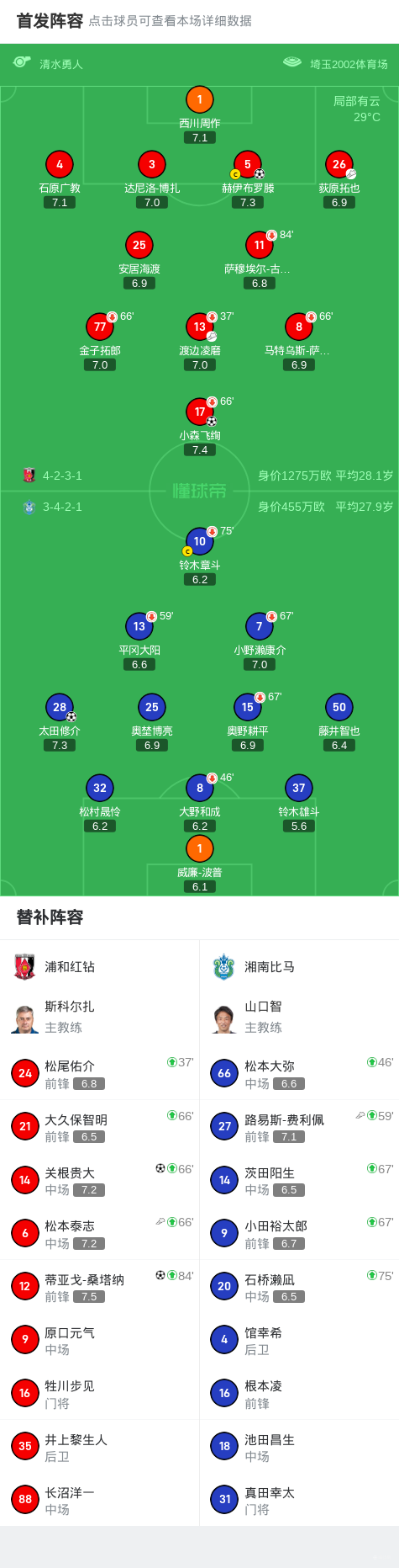浦和4-1送湘南8轮不胜,小森飞绚斩入队首球,桑塔纳补时建功
