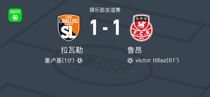 北京时间7月24日进行的一场俱乐部友谊赛中,拉瓦勒与鲁昂展开较量。比赛中,拉瓦勒球员塞卢基率先取得进球,为球队打开局面。随后,鲁昂球员victor tilliez成功扳平比分。最终双方以1-1握手言和。