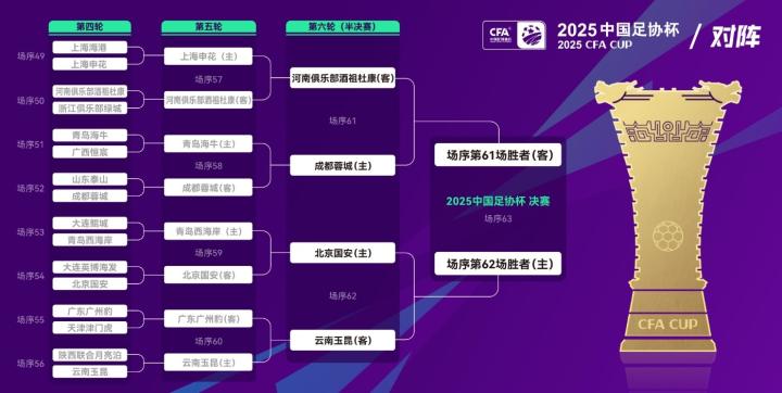 接下来的足协杯半决赛对阵交锋,河南队将与成都蓉城争夺晋级资格。