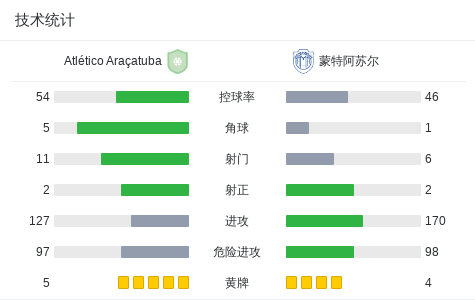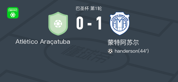 蒙特阿苏尔1-0Atlético Araçatuba,handerson一剑封喉战报bot @懂球帝2025-07-24 09:027月24日,巴圣杯第1轮,Atlético Araçatuba与蒙特阿苏尔展开较量。比赛中,蒙特阿苏尔球员handerson在上半场结束前成功破门,为球队取得领先。最终,比赛以Atlético Araçatuba 0-1蒙特阿苏尔的比分结束。点击查看本场比赛详细数据>>精彩瞬间第44分钟,蒙特阿苏尔球员handerson打入一球。 技术统计 展开更多