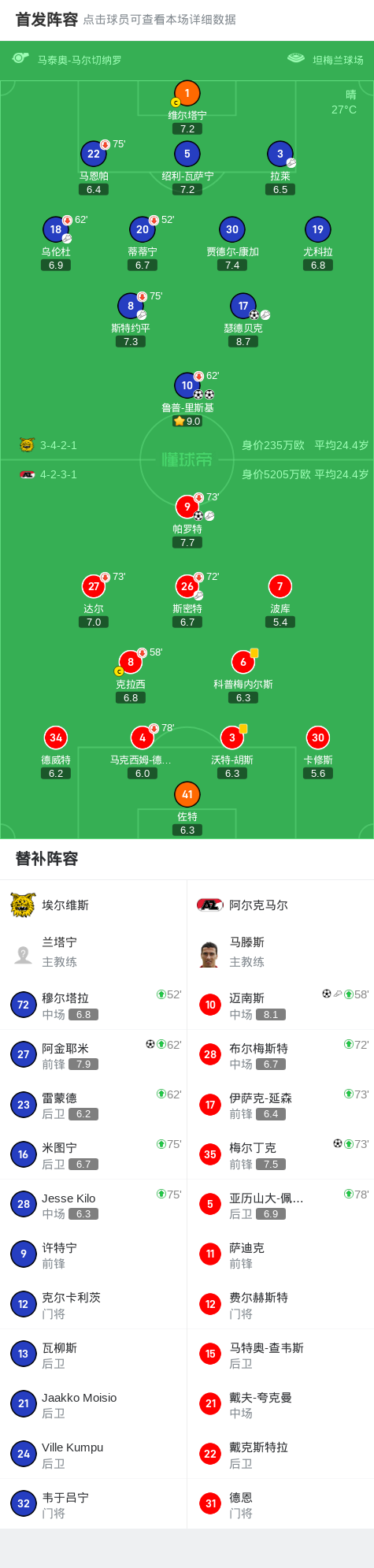 第61分钟,阿尔克马尔球员帕罗特助攻迈南斯打入一球。