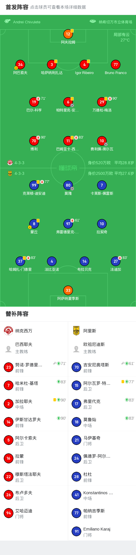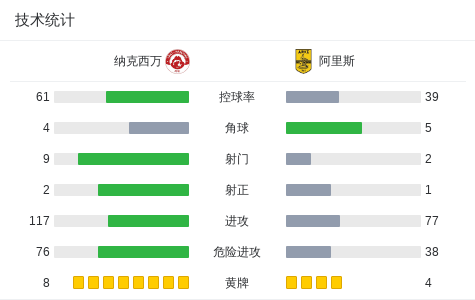纳克西万2-1逆转阿里斯,帕特里克-安德拉德、费利佩-席尔瓦建功