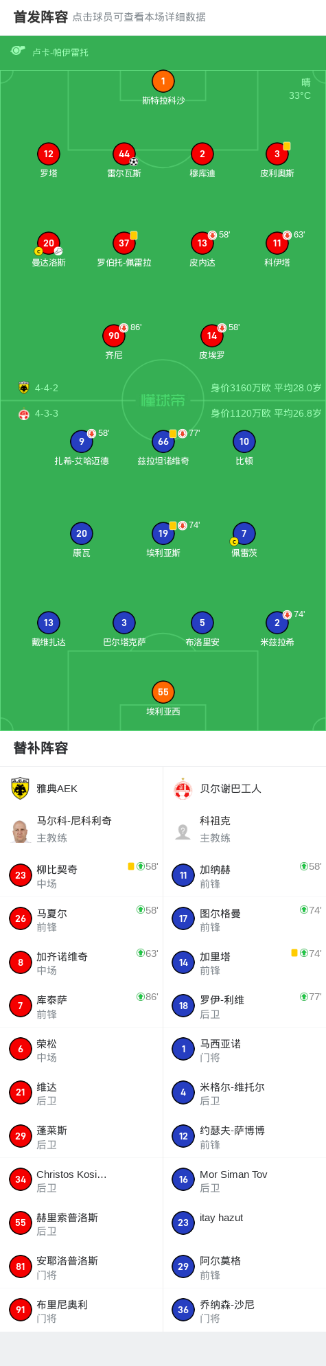 雅典AEK1-0贝尔谢巴工人,雷尔瓦斯助球队取胜