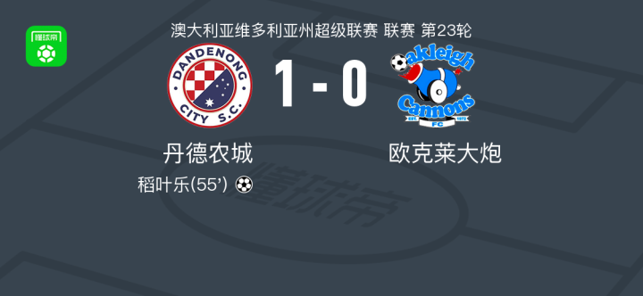 丹德农城1-0欧克莱卡诺,稻叶乐制胜球战报bot @懂球帝2025-07-25 19:38北京时间7月25日,澳大利亚维多利亚州超级联赛第23轮,丹德农城主场迎战欧克莱卡诺。比赛中,丹德农城球员稻叶乐在关键时刻打入全场唯一进球,帮助球队以1比0战胜对手。最终,丹德农城顺利拿下三分,巩固了积分榜上的有利位置。点击查看本场比赛详细数据>>精彩瞬间第55分钟,丹德农城球员稻叶乐打入一球。 技术统计 展开更多